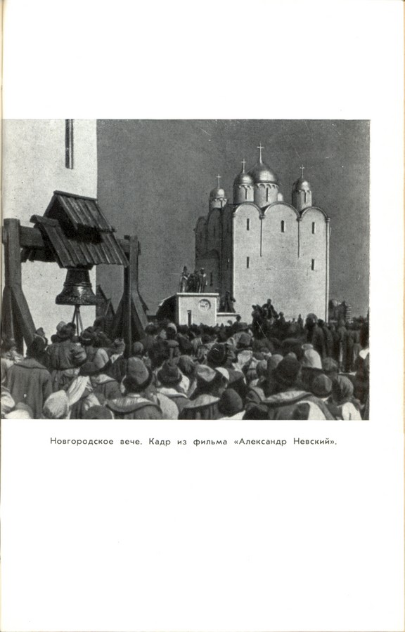 Пашуто, В. Т. Александр Невский / В. Т. Пашуто. – Москва : Молодая гвардия, 1974. – 160 с. : 25 л. ил. – (Жизнь замечательных людей : сер. биогр. Осн. в 1933г. М. Горьким ; вып. 10 (542)). На иллюстрации – кадр из фильма «Александр Невский» (1938). |